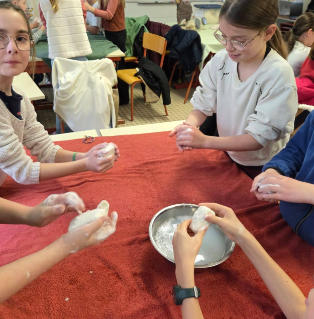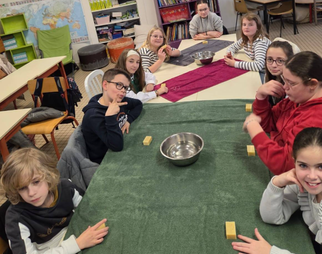 Après avoir joué à un jeu collaboratif, la semaine s’est achevée avec un atelier de feutrage de laine autour d’un savon au miel. Les CM2 repartent avec leur propre savon.
